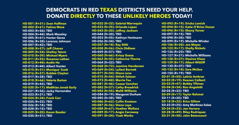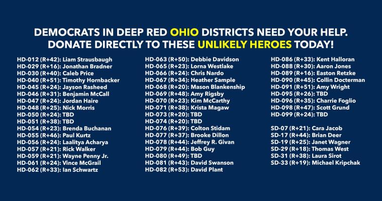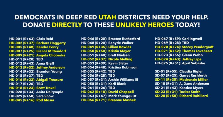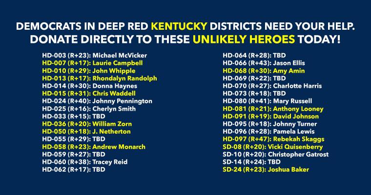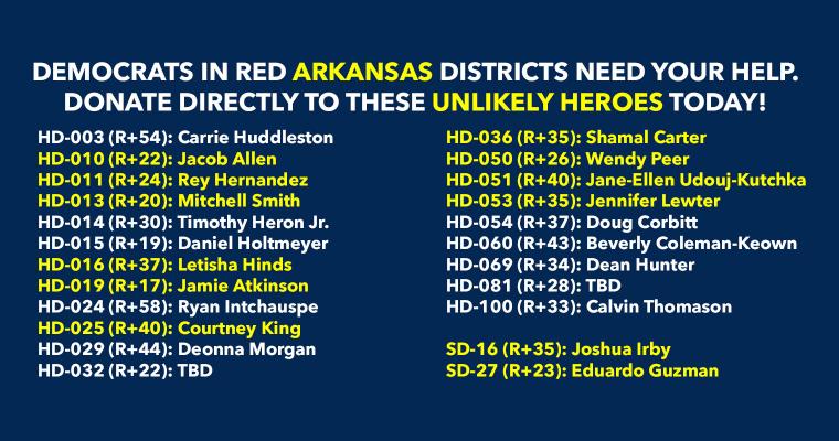 Links on this page allow you to easily donate to multiple Democrats running for state legislative seats in every state!