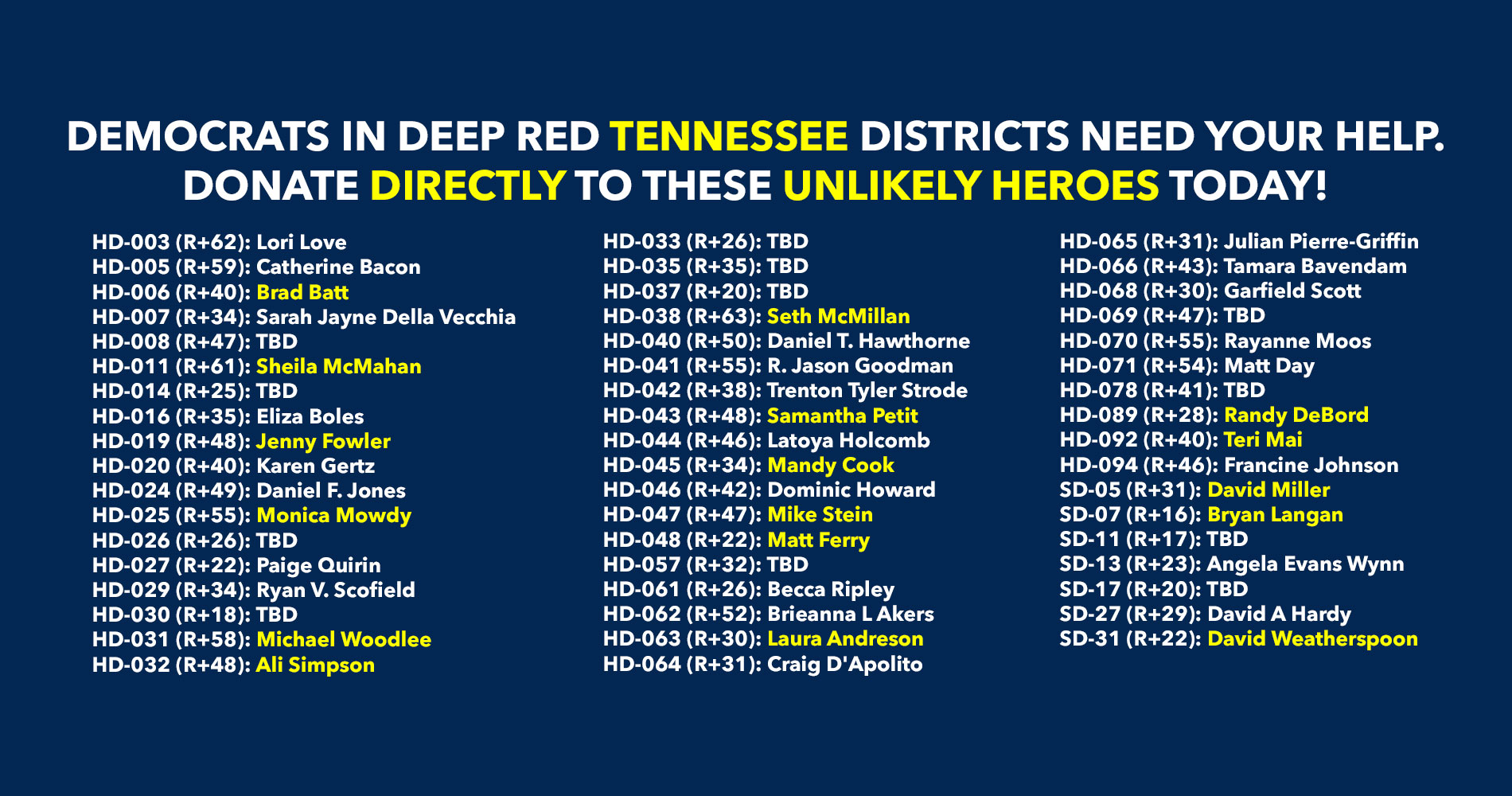 Donate to Democratic candidates running in competitive districts to keep & flip as many seats blue as possible!
