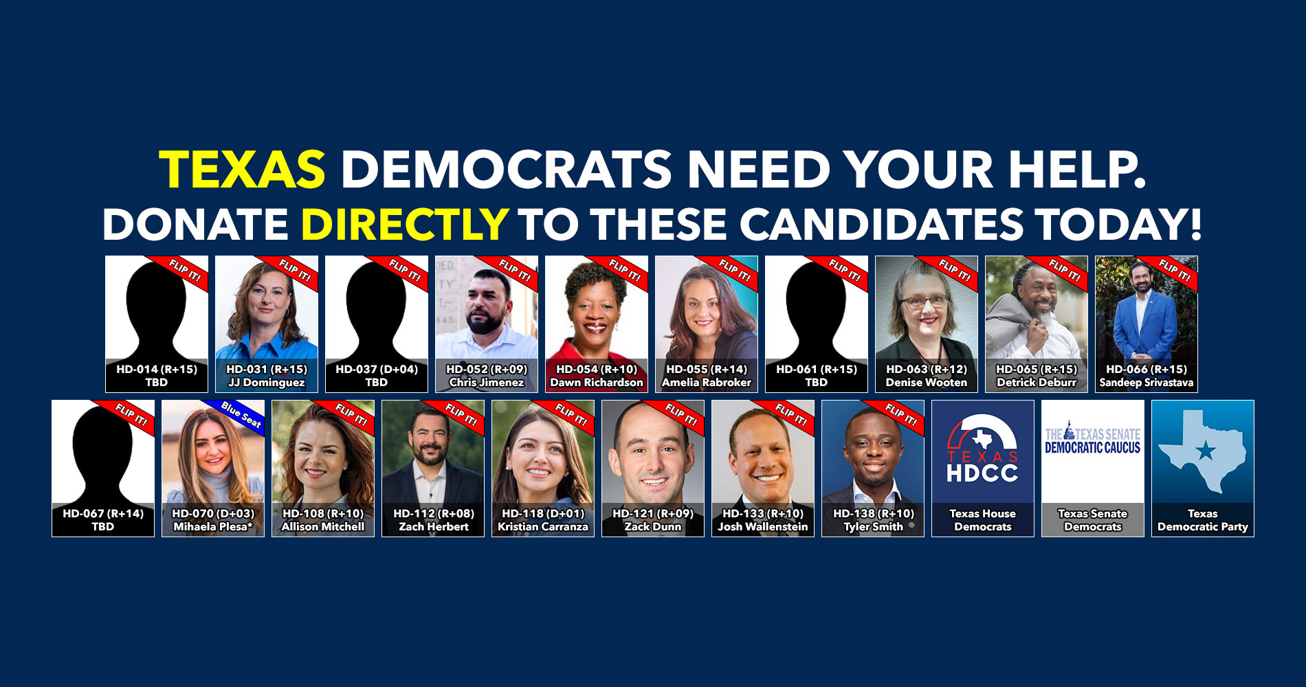 Donate to Democratic candidates running in competitive districts to keep & flip as many seats blue as possible!