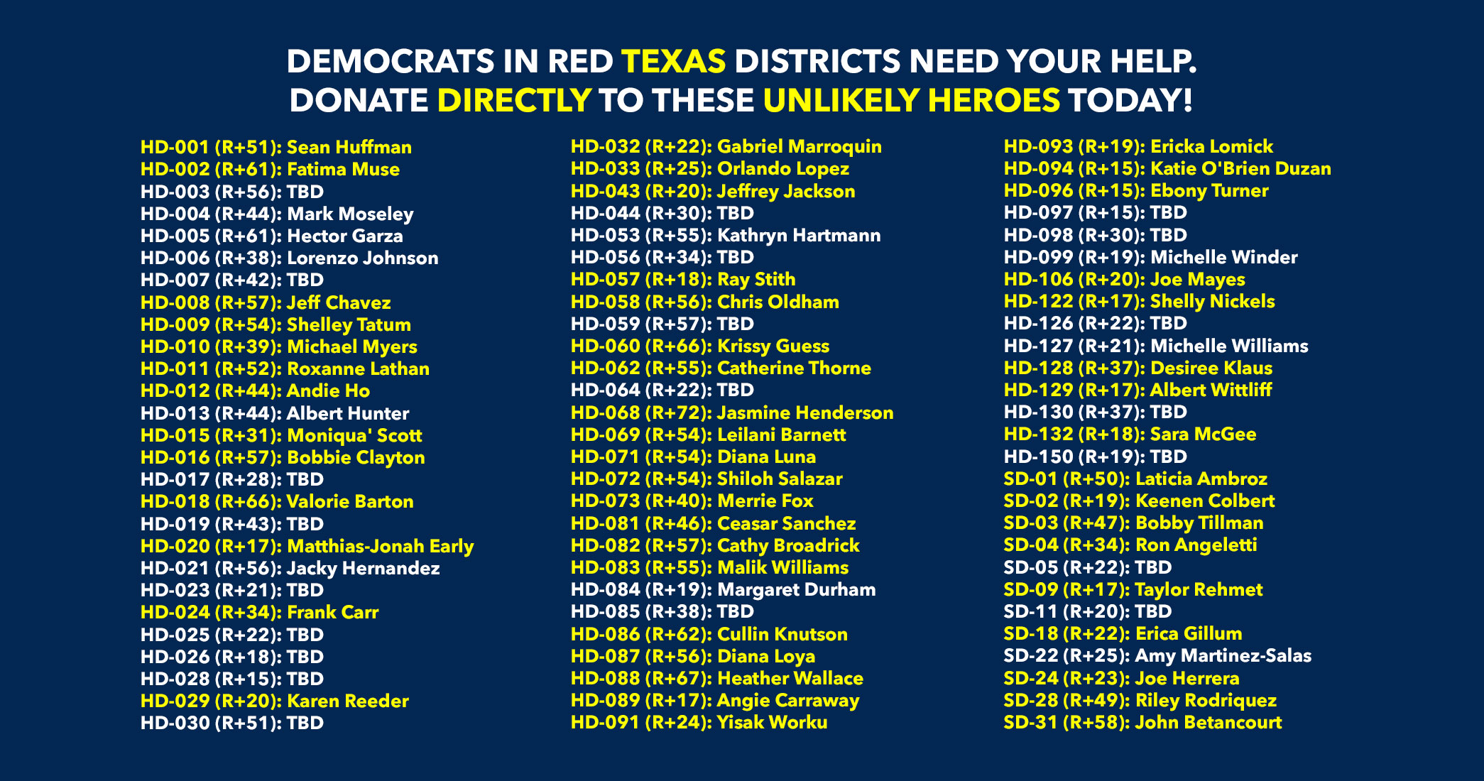 Donate to Democratic candidates running in competitive districts to keep & flip as many seats blue as possible!