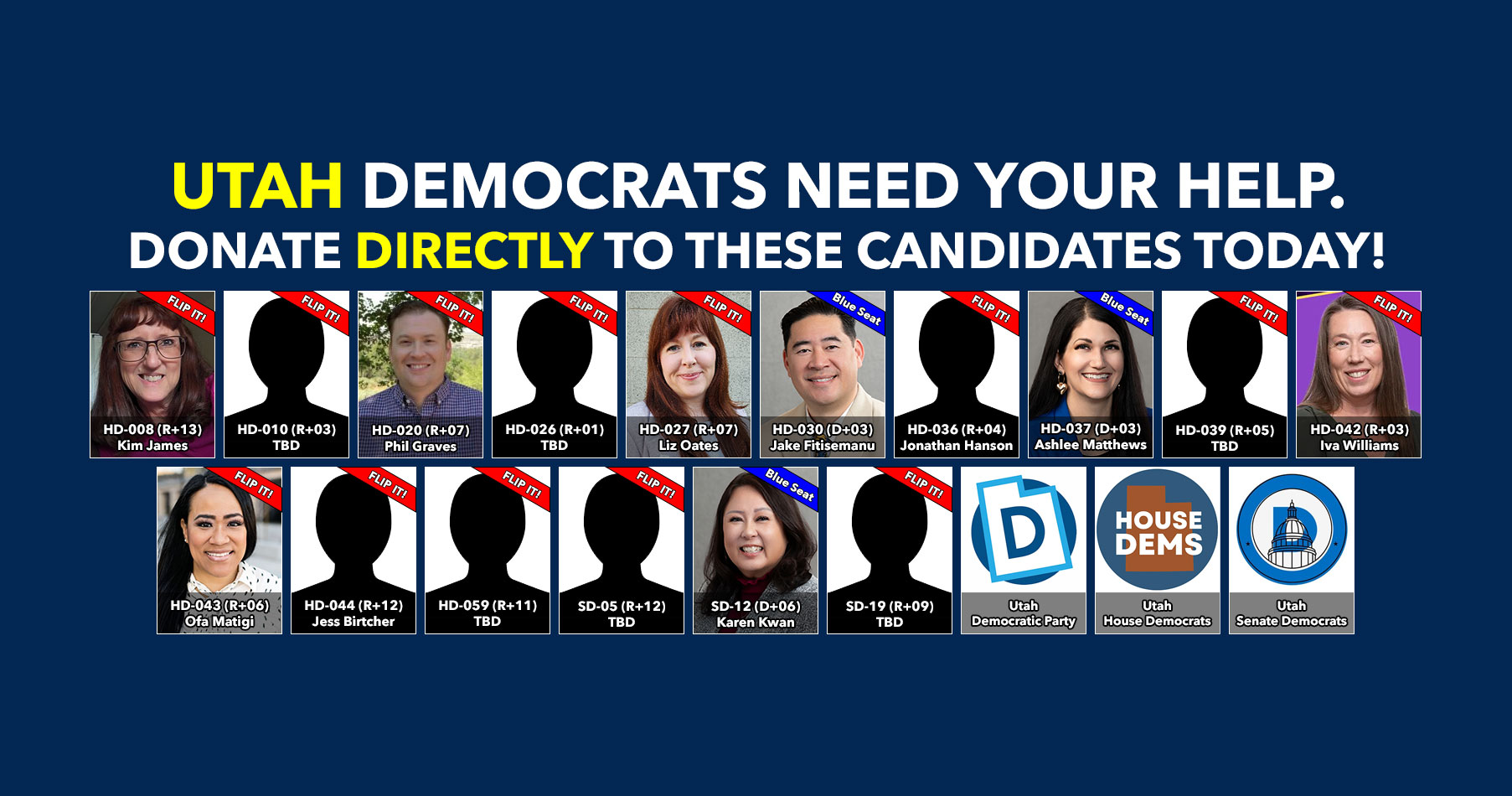 Donate to Democratic candidates running in competitive districts to keep & flip as many seats blue as possible!